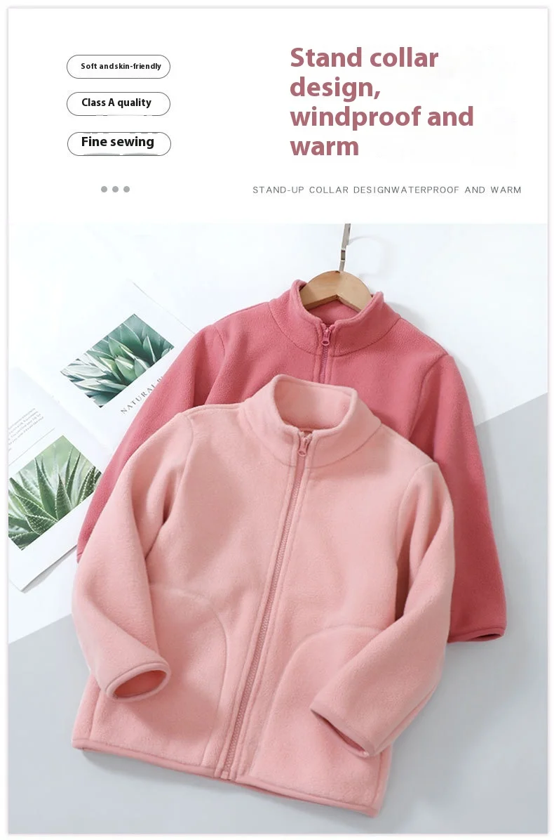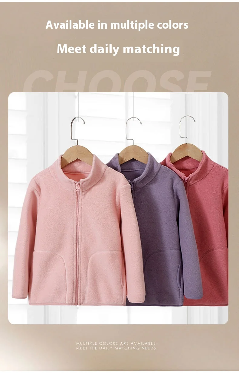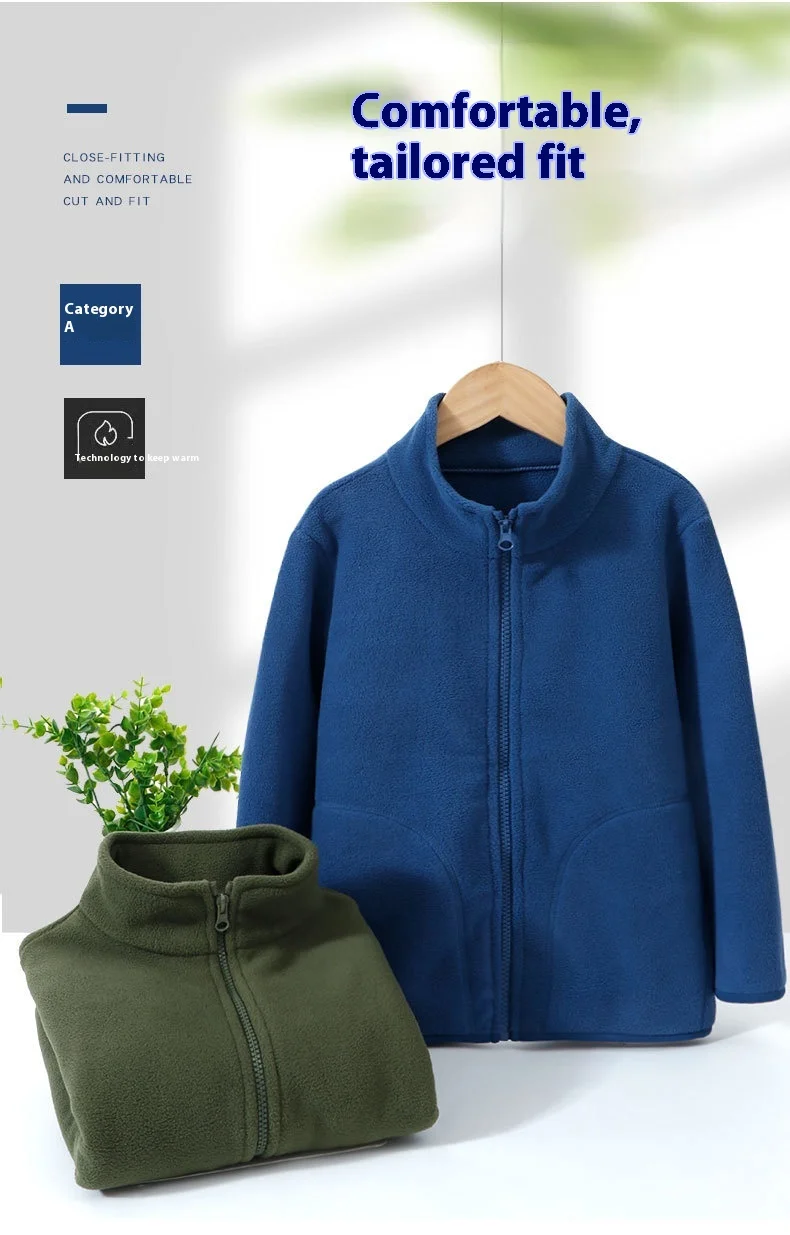 This kids’ fleece jacket is the perfect school essential or casual outerwear for chilly days! Designed with a stand collar and smooth zipper, it locks in heat while offering hassle-free wear. The anti-pilling fleece fabric ensures durability, whether for playground runs or classroom comfort.